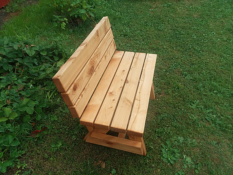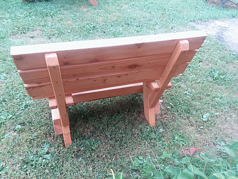 Made of Pennsylvania pine right from the saw mill this 6 foot reversible bench is heavy duty with stainless steel bolts. A 2X4 frame with back that can flip from one side to the other and can handle a heavy load. Coated with a deck stain that helps with outdoor environment. A great addition for those who want a relaxing bench. Price: $594.95